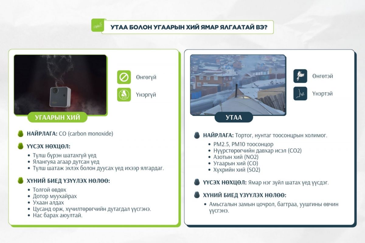 Нийслэлийн 120.000 гаруй айлын угаарын хий мэдрэгч төхөөрөмжөөс ирж буй мэдээллийг Түлш хэрэглэгчдэд үйлчлэх төв хянаж, угаарын хий ялгарсан тохиолдол бүрт сэрэмжлүүлэг зөвлөгөө өгч ажилладаг. Иргэд утаа болон угаарыг ялгахгүй байгаа талаар тус төвийн операторууд хэлж байна. Хүчилтөрөгч дутмаг орчинд дутуу шаталтаас болж үүсдэг зүйлийг угаар гэж нэрлэдэг. Ямар ч өнгө, үнэргүй. Иргэдэд гэрт нь угаарын хий ялгарсан талаар мэдээлэл өгөөд залгахаар манайд юу ч үнэртэхгүй байна, утаа гаргаагүй, байн байн битгий залгаад бай гэж хэлэх тохиолдол гардаг аж. Агаар сэлгэлт хийгээгүй, битүү орчинд хүн угаартах эрсдэлтэй байдаг. Тийм болохоор яндан зуухыг тогтмол хөөлөх, зуухны ам тагийг сайтар хаах, гал түлэхдээ сойлтоо хаахгүй байхыг зөвлөж байна. Мөн угаарын хий ялгарч, төхөөрөмж дуугарвал төхөөрөмжийг дуугарахаа больтол агаар сэлгэх нь чухал юм.