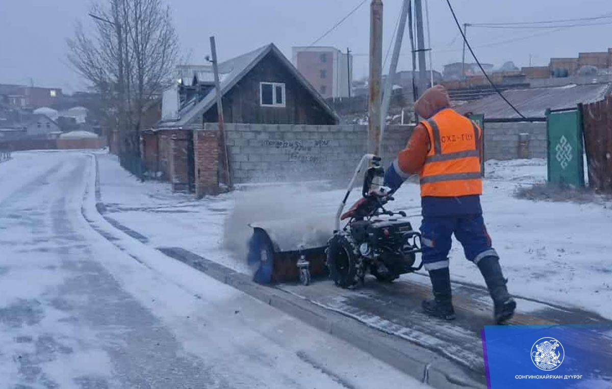 Өнөөдөр өглөө 05:00 цагаас эхлэн цас орж нийслэлд цасан шуургатай байна. Иймд халтиргаа гулгаанаас урьдчилан сэргийлж Тохижилт цэвэрлэгээ үйлчилгээ ОНӨААТҮГ 165 хүний бүрэлдэхүүнтэйгэээр 14 машин, 2 мини шүүрдэгч, 12 төхөөрөмж, 8 үлээгчтэй ажиллаж байна.